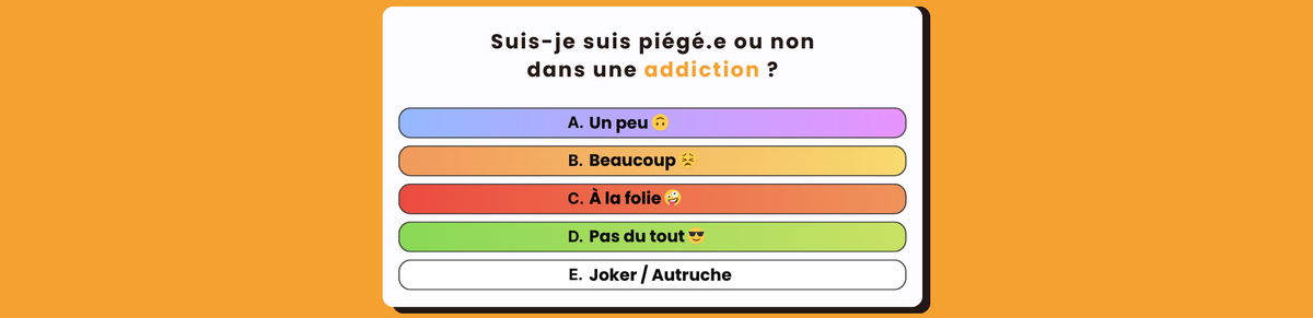 Pour vous permettre d'établir avec un peu plus de précision si oui ou non vous souffrez aujourd'hui d'une addiction, je vous propose ce test très simple, avec une dizaine de questions et une évaluation explicative à la fin, en fonction de vos réponses.